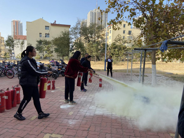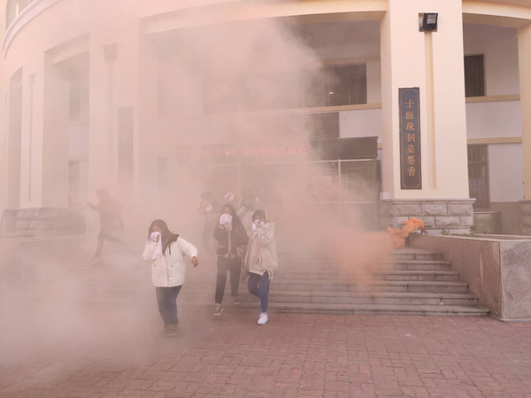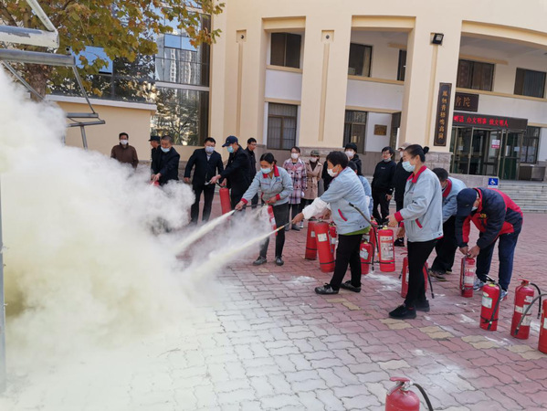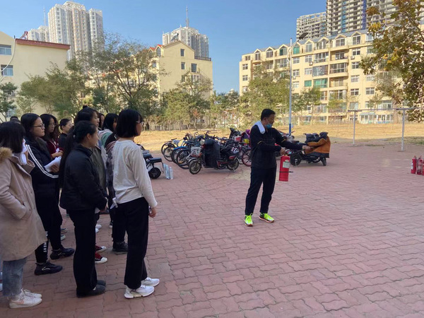 演练首先在疏散中开始,各部门人员立即奔赴指定地点,消防疏散演习按照预定程序迅速展开。工作人员立即拨打火警电话进行报警,迅速打开公寓安全疏散通道,各消防通道负责人员迅速引导学生逃生,所有学生接到疏散指令后用湿毛巾捂住口鼻迅速、低姿、有序地从宿舍楼撤离到指定地点,整个疏散过程紧张有序,忙而不乱。消防疏散后,林建秋处长就此次疏散活动、公寓消防安全和学生消防意识、逃生能力的增强给予肯定,并提出新的要求,要求大家一定注重安全防范意识,增强对火灾的认识,提高防火灾的能力,确保学生安全。接下来,党总支书记郭跃峰和保卫办公室宋迎春对全体参演人员详细地讲解了灭火器的使用方法,并组织学生和公寓管理人员进行实地操作和演练。