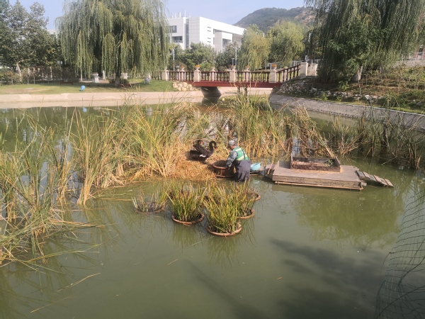 为了避免大风天气对孵化产生影响,为天鹅安装了挡风围挡。
