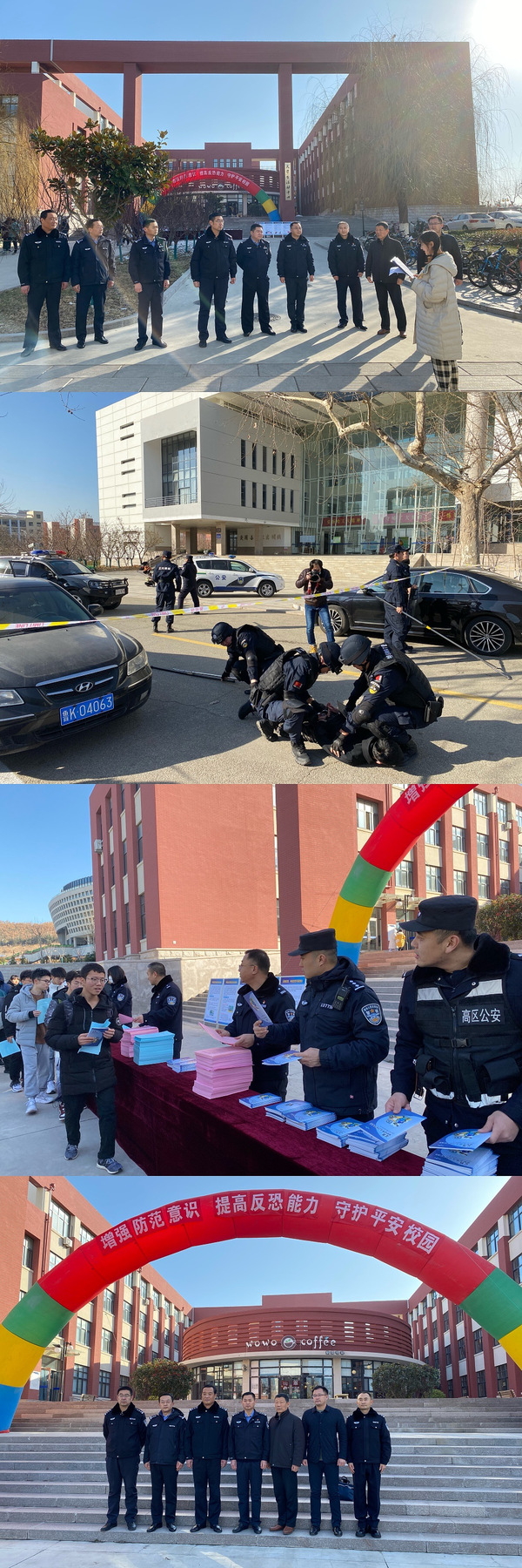 为提高我校安保人员对反恐事件的处置能力,加强平安校园建设,营造安全和谐的学习生活环境,12月25日在宁学楼前由威海市公安局高区分局反恐办和后勤保卫处联合组织开展反恐防爆校园演练活动。威海市公安局党委成员高乃江、高区公安局金海滩派出所所长盛威及部分警官参加活动,后勤保卫处党支部书记郭跃峰同志、副处长毛凤虎同志陪同。