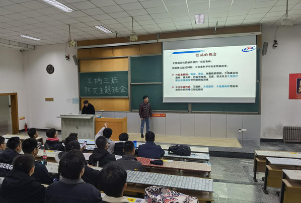 专家讲座结束后,各院系联络员同学组织大一各班班委,以同伴教育的形式开展“以防治艾滋病”为主题的班会。在主题班会开展过程中,各院系联络员同学与班委全力配合,使用疾控中心专业化知识性的防艾课件,进行了精彩生动得讲解,获得同学们的一致好评。