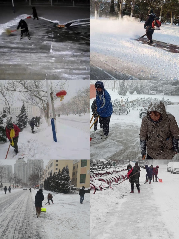 此次下雪,后勤保卫处行动迅速,全员备战。按照清雪工作方案要求,机械组00:40在行车道按照大雪滚行车路线、大铲车行车路线和小滚子行车规定路线投入清雪工作,吹雪设备组4:00开始人行道清雪工作,人工组5:30全员就位开始作业,各区域路段细分,乙方物业指定组长,公布联系方式,由其负责管理落实该区域路段清雪工作,并及时将清雪工作进展情况通报反馈。甲方现场指挥并监督,细化管理,负责校园内各区域清雪工作的检查考评工作,及时了解天气情况,提前做好各方面准备,在准备到位的基础上,根据校区清雪工作标准清单的时间和质量要求、清雪工作清单按监督检查清单工作启动相应巡查考评,发现问题及时督办落实。