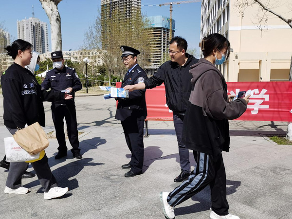 在第六个全民国家安全教育日来临之际,为进一步增强师生员工的国家安全意识、提升风险防范能力,2021年4月15日上午,后勤保卫处联合威海市公安局高区分局国保大队、金海滩派出所、怡园街道办事处在步行街举行国家安全教育日主题宣传活动。后勤保卫处党总支书记郭跃峰、副处长毛凤虎参加活动。
