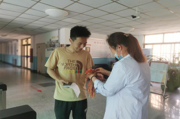 同时,值班员为学生们佩戴具有美好寓意的五彩绳,并和学生亲切交流端午节来源、习俗,让学生们用心体验了我国传统节日蕴涵的意义,体会到学校的关心与爱护。