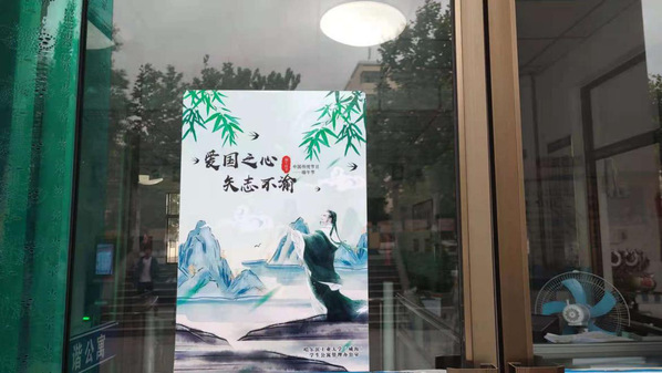 “吾将上下而求索”的爱国诗人屈原,为国为民奉献生命,他是爱国精神的象征,也赋予端午节之灵魂所在。学生公寓管理办公室在各公寓大厅张贴了有关端午节爱国主题的宣传海报,让同学们直观地感受到彰显家国情怀是端午节的鲜明主题。