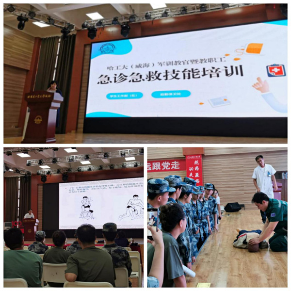 7月15日下午,后勤保卫处联合学工处在大学生活动中心多功能厅举办了军训教官及教职工急诊急救技能培训。培训邀请了高区利民医院骨科主任毕建飞、急诊科主任曲伟、急诊科护士长候丁玮讲座和现场技能演示。