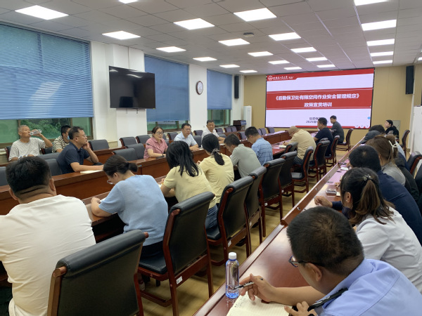 为了加强校区有限空间作业安全管理,切实保障师生安全,9月30日,后勤保卫处在主楼五号会议室组织开展有限空间作业安全培训。后勤保卫处处长袁广龙、后勤保卫处党总支书记迟春霞、各部门负责人及相关管理岗人员参加了培训。