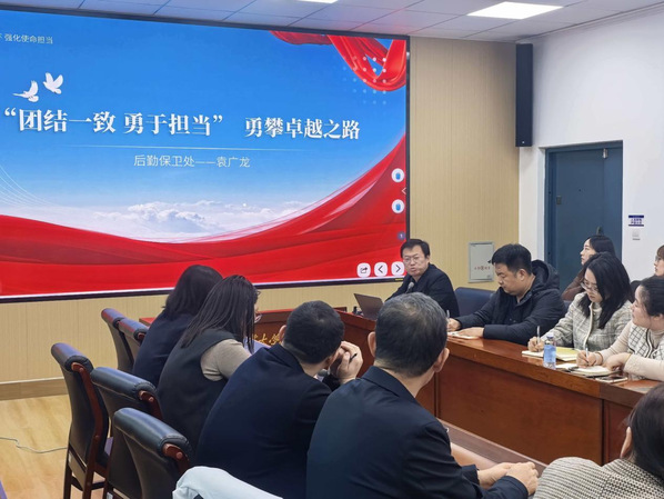 2025年11月20日,后勤保卫处在五号会议室召开“团结一致 勇于担当 勇攀卓越之路”专题党课。本次党课由处长袁广龙同志主讲,后勤保卫处全体党员和管理岗人员参与学习。