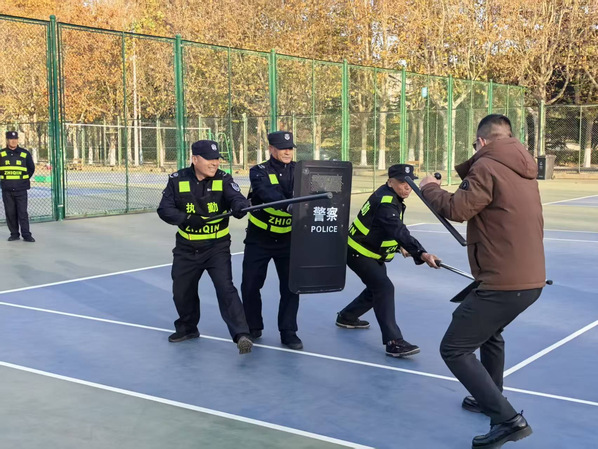 为推进校园“最小应急单元”处置机制建设,切实提高突发事件处置能力。11月21日,后勤保卫处联合金海滩派出所为保安进行应急处置技能培训。参加培训的有后勤保卫处党总支书记迟春霞、保卫办公室主任邹志强、金海滩派出所驻校民警以及参训的保安队员。